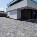 Колір Хром універсальний — він гармонійно поєднується з будь-якими фасадами: від білого мінімалізму до темних дизайнерських рішень. Завдяки грі світла на поверхні бруківка виглядає живо, додаючи простору естетики та вишуканості.