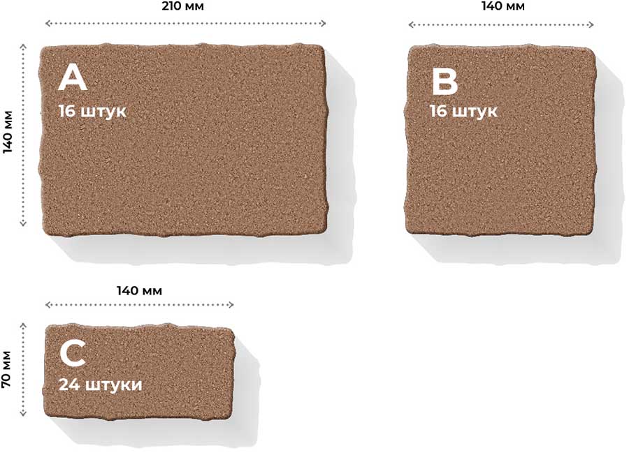 Виготовлена з високоміцного бетону, бруківка Теано відзначається підвищеною стійкістю до механічних навантажень, морозу та вологи. Завдяки точним геометричним формам плитка легко укладається, забезпечуючи рівне й довговічне покриття.